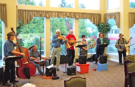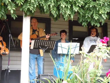 “At the Tomato / Garlic Festival, the audience could hardly see the band on the porch because of plants everywhere.”